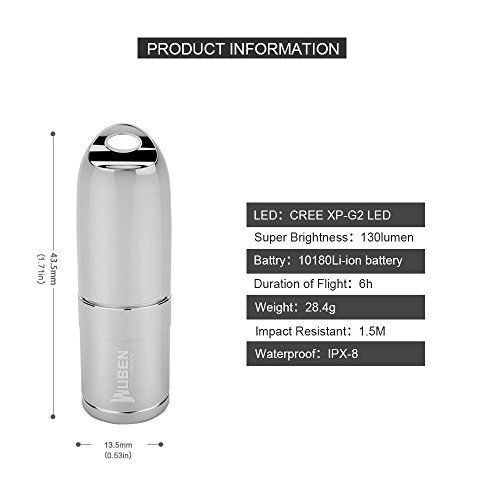 Keychain Flashlight, WUBEN Portable Stainless Steel Waterproof IPX8 130 Lumens USB Rechargeable Mini Necklace LED Flashlights Torch