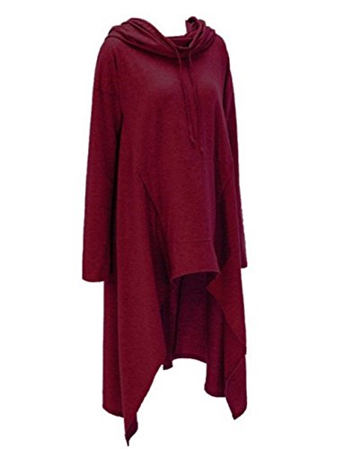 -. Title : 女性 ルーズパーカー スウェット 長袖 アウターコート ドレス カンガルーポケットと非対称裾付き