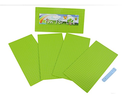 -. Title : L.E.G.O-Compatible Brick Building Base 10'' x 5'' (4 Pack) Apple Green Baseplate with a Brick Separator- by Fun For Life