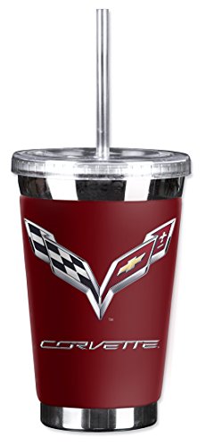 Mugzie GM-272-TGC "Corvette C7 Logo (Burgundy)" To Go Tumbler with Insulated Wetsuit Cover, 16 oz, Red