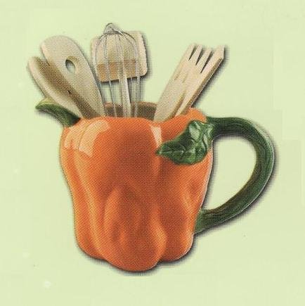 ORNAGE BELL PEPPER 3-D Ceramic Pitcher & Utensils Set NEW