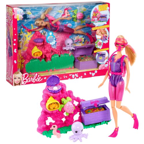 -. Title : Mattel Year 2011 Barbie "I Can Be" Series 12 Inch Doll Playset - Ocean Treasure Explorer BARBIE (Y9347) with Coral Reef, Sea Horse, Octopus, Turtle, Treasure Chest and Scuba Gear