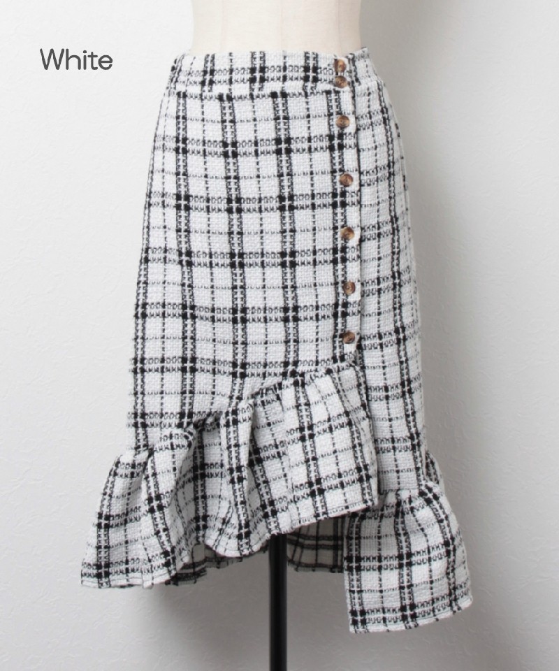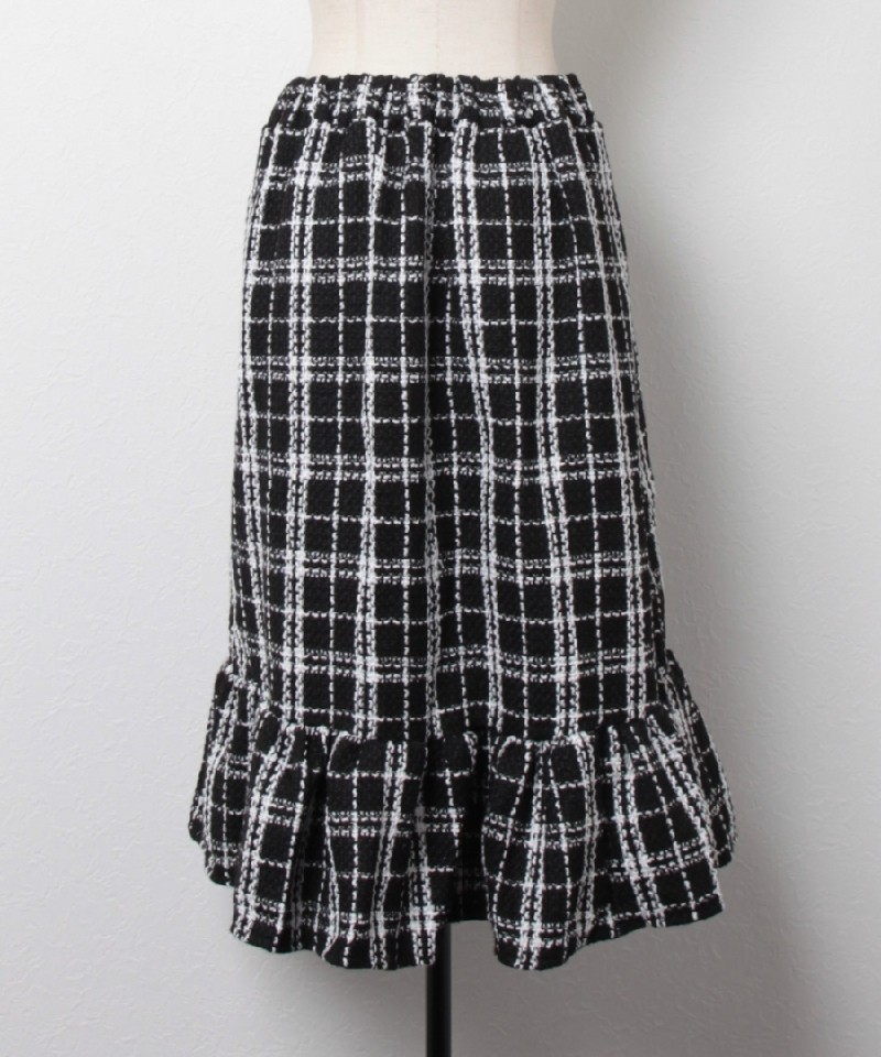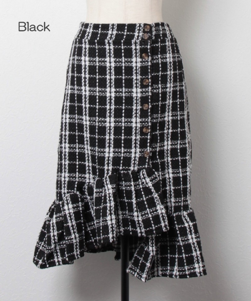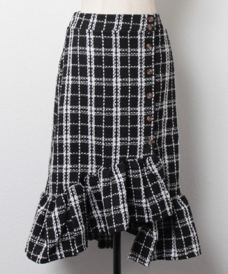 飾りボタンとフリル切替がかわいい◎チェックツイードスカート! |