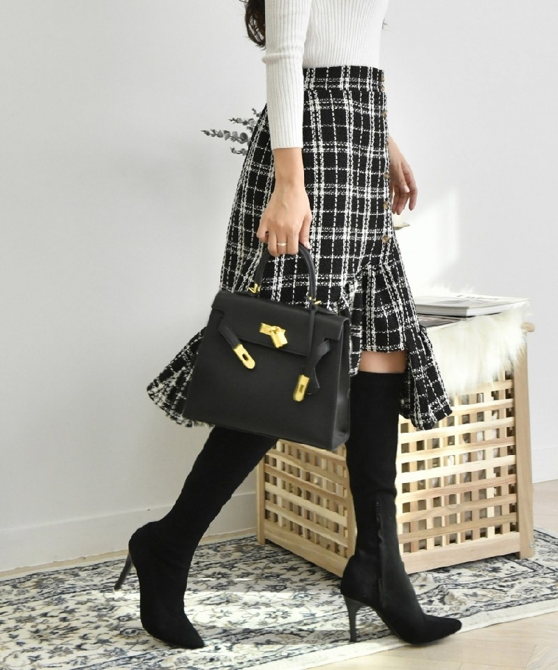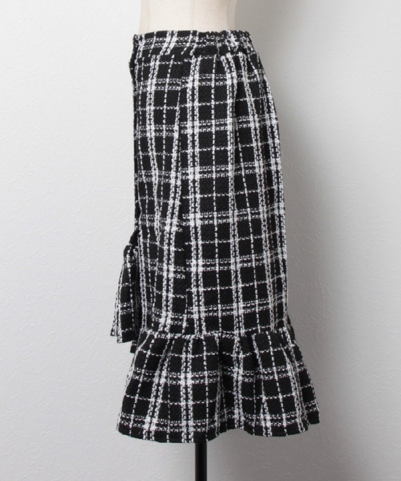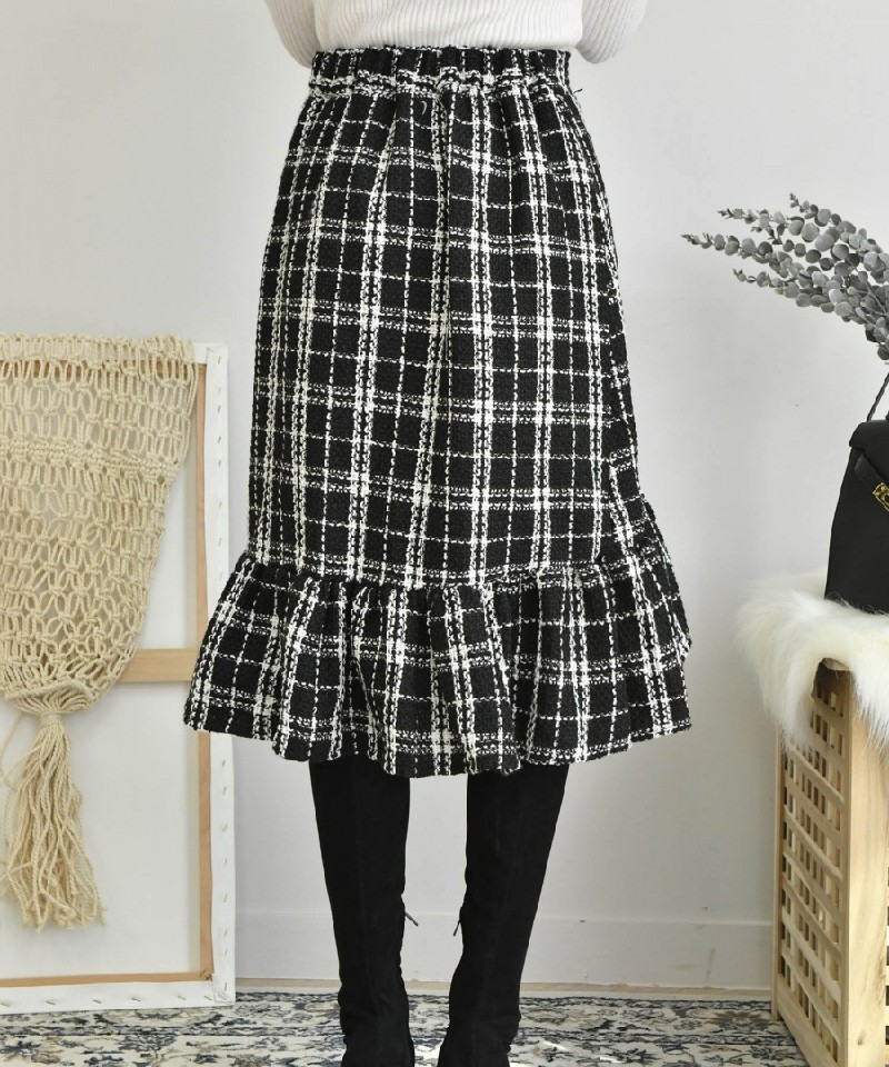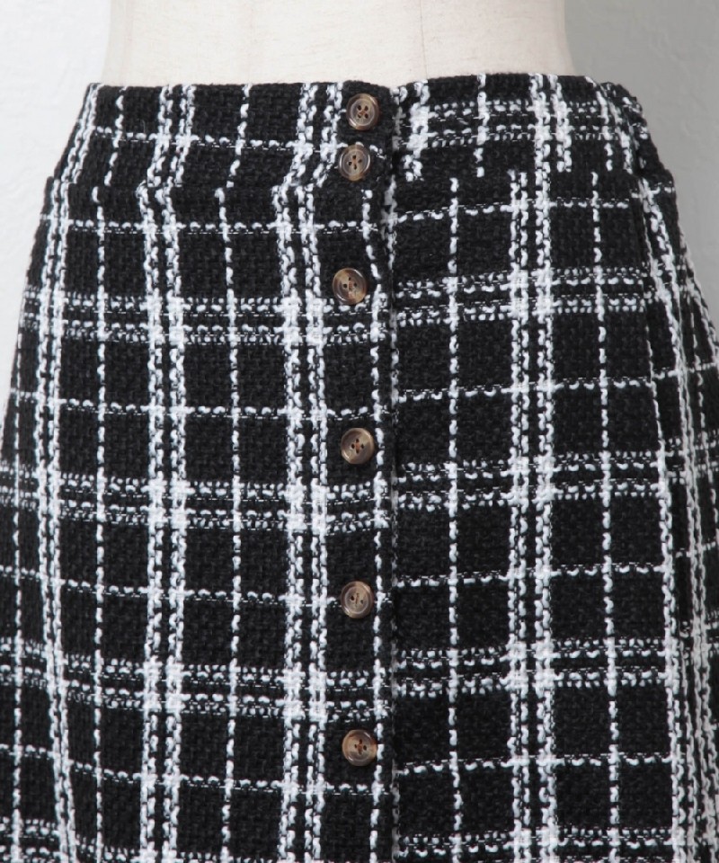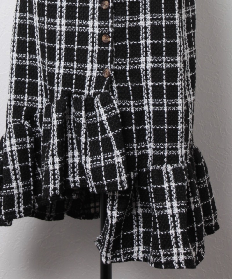 飾りボタンとフリル切替がかわいい◎チェックツイードスカート! |