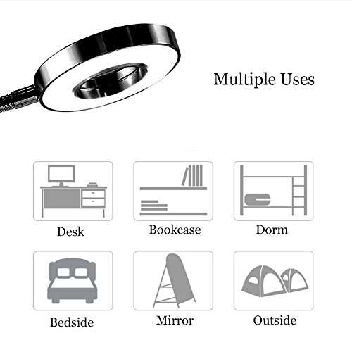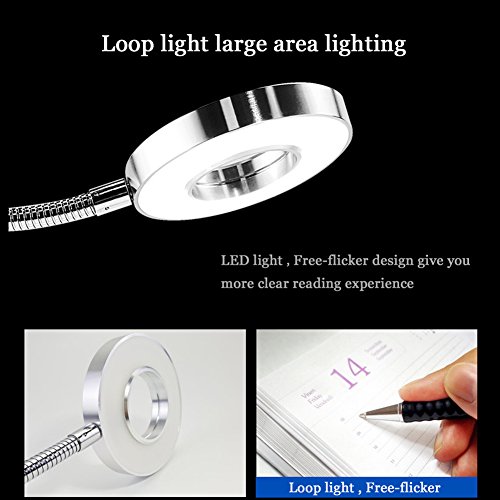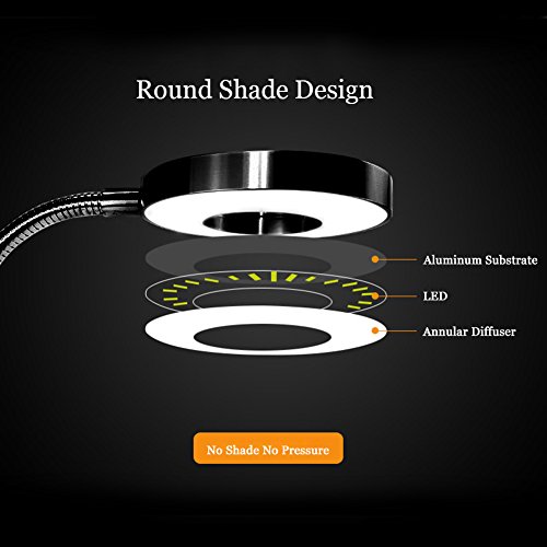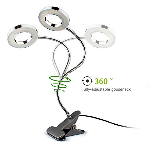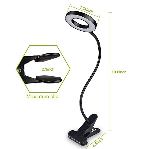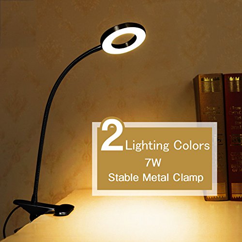 Clip on Light, HQOON Eye-Care Desk Lamp, Portable Book Light Clip on Desk, Bed Headboard and Computers, Gooseneck, 2 Lighting Color, USB Plug, 7W, Durable Clamp, Bedside Reading Light