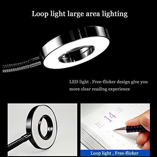 Clip on Lamp, HQOON Desktop Lamp with Stable Clamp, Book Light for Reading in Bed, Eye-Care Bedside Reading Light, Music Stand Light, 2 Lighting Color, USB Plug, 7W