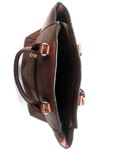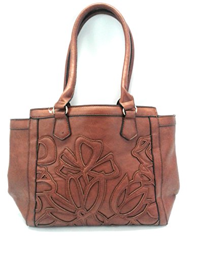 Women's Top Handle Satchel Purse Shoulder Bag Messenger Tote Bag Imprinted Flower Design – Dark Brown