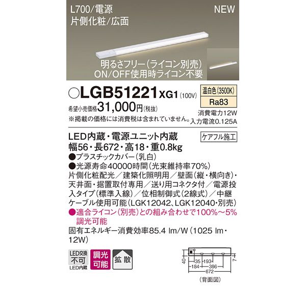 ●光源:LED(内蔵、温白色タイプ)、色温度:3500K、光源寿命40000時間(光束維持率70%)