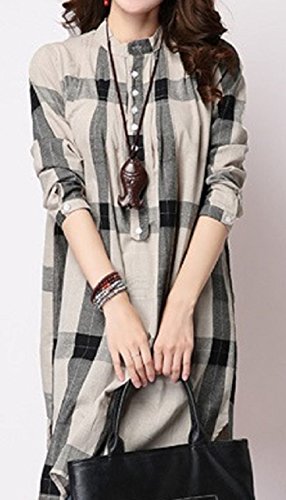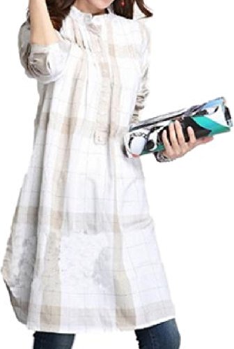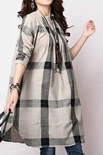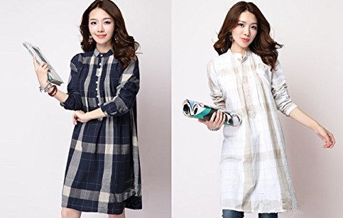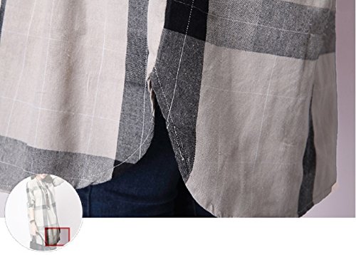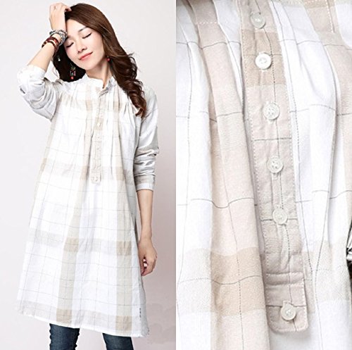 -. Title : (シーデフ) cdef レディース ひざ丈 チェック チュニック シャツ ブラウス長袖 綿麻 リネン #16