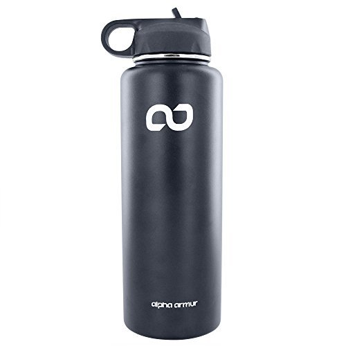 Alpha Armur 40 Oz (1.1L) Water Bottle Stainless Steel drinking flask Double Wall Vacuum Insulated stainless steel food flask Wide Mouth Bottle with Sports Lid flask stainless steel for beach, Black
