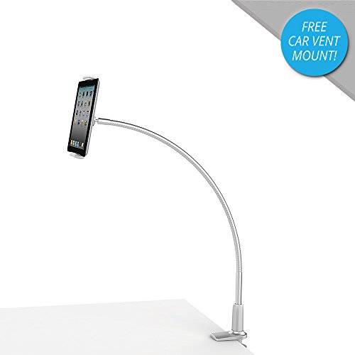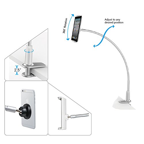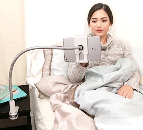 ✓ HANDS-FREE DESIGN: Free up your hands while reading your favorite kindle book on your iPad, Facetime with friends and family, or even watching movie on cell phone. This strong gooseneck tablet mount and iPad holder is perfect to put on bedside, desk, treadmill or kitchen. SEE RELATED VIDEO SHORT BELOW