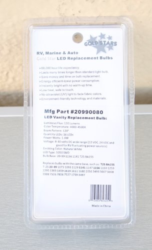 2 x Gold Stars 20990080-02 LED Vanity Light 20-99/1156 Base 130 Lums 12v or 24v Natural White