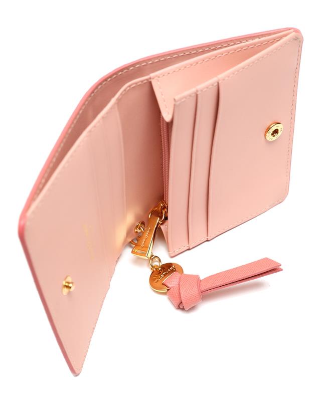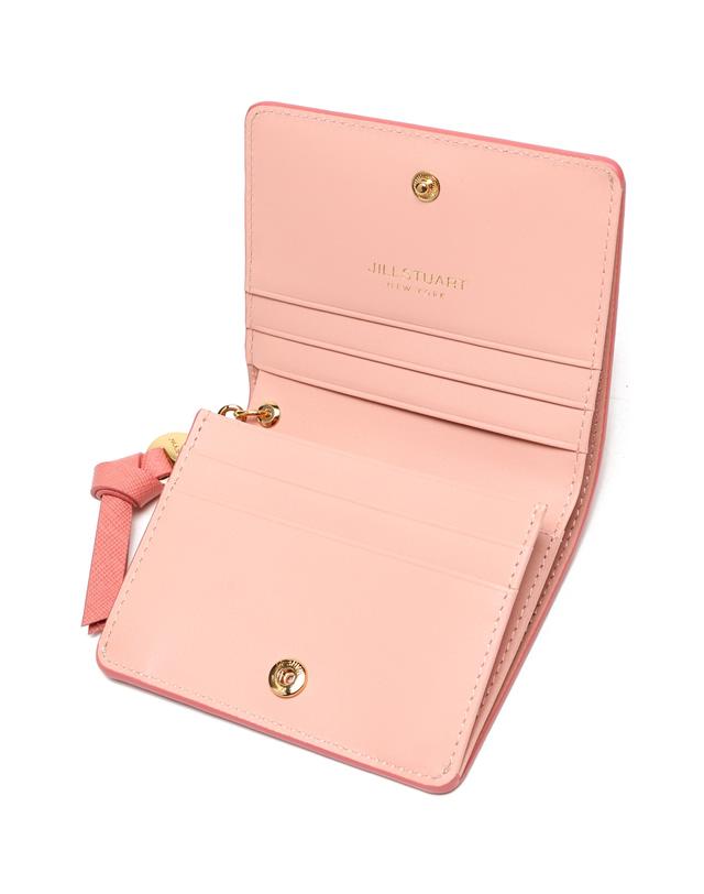 깔끔한 진핑크 솔리드 디자인에 내부 베이비 핑크 배색과 금장 로고 참장식으로 포인트를 준 2단 반지갑 입니다.