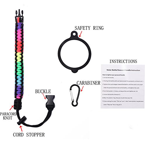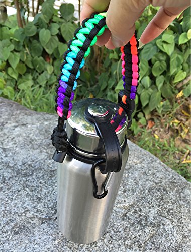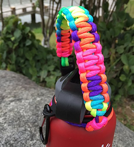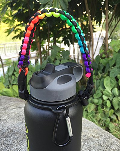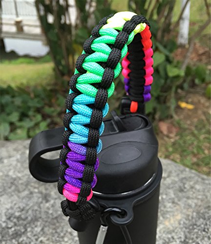 Handle for Hydro Flask - Paracord Survival Strap with Security Ring for Wide Mouth Water Bottles Carrier (Colorful/Black)