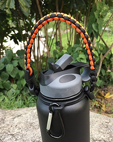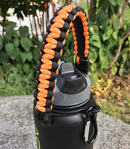 Handle for Hydro Flask - Paracord Survival Strap with Security Ring for Wide Mouth Water Bottles Carrier (Orange/Black)