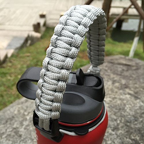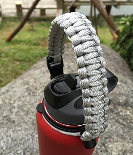 Handle/Carrier for Hydro Flask Wide Mouth Bottles with Security Ring,Paracord Survival Strap Handles with carabiner. (Silver)