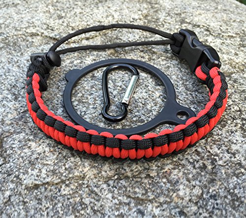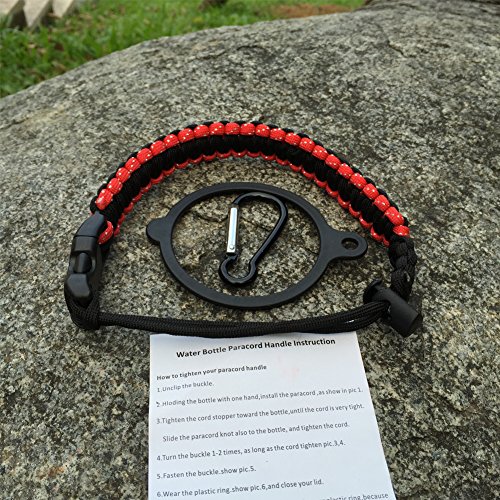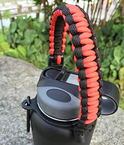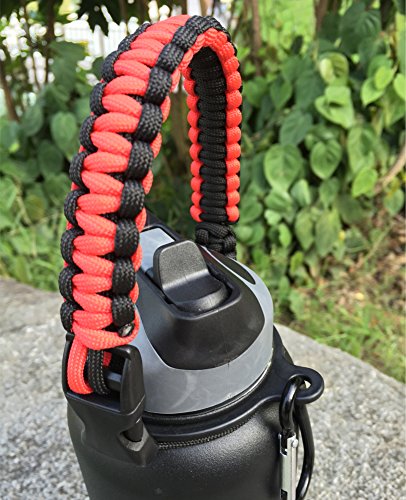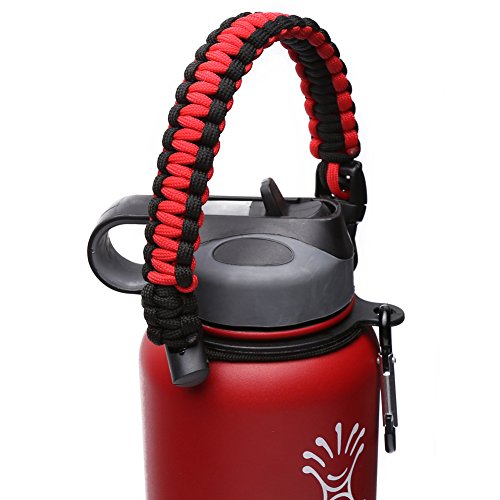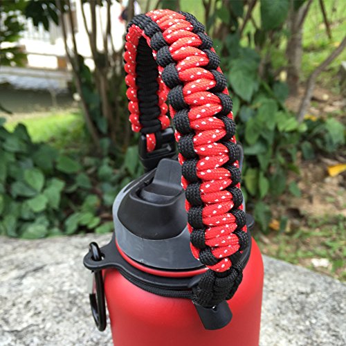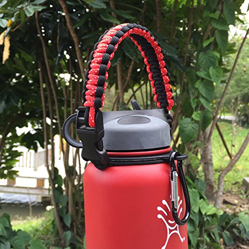 Handle for Hydro Flask - Paracord Survival Strap with Security Ring for Wide Mouth Water Bottles Carrier (Red/Black)