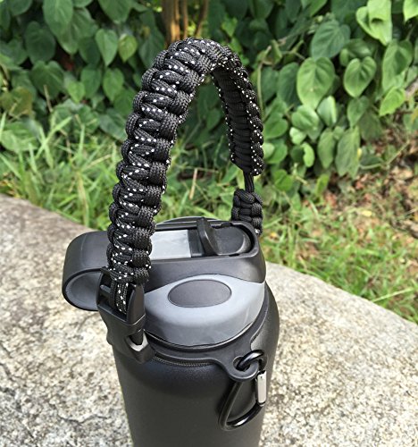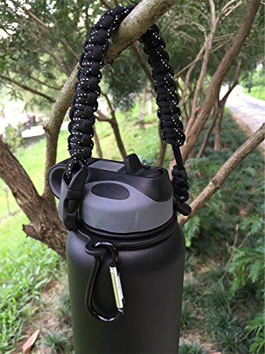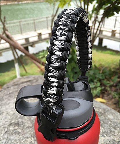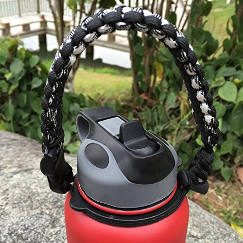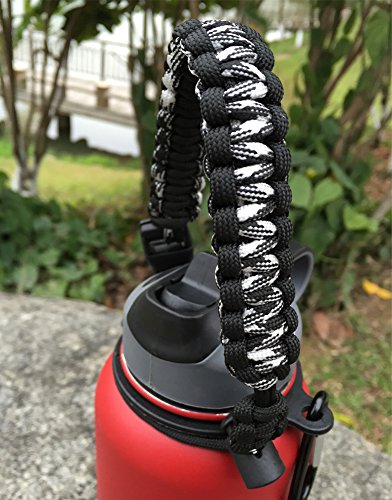 Handle for Hydro Flask - Paracord Survival Strap with Security Ring for Wide Mouth Water Bottles Carrier (Black/White Point Reflex)