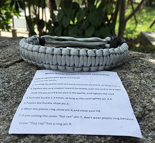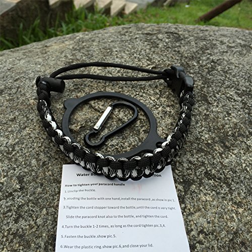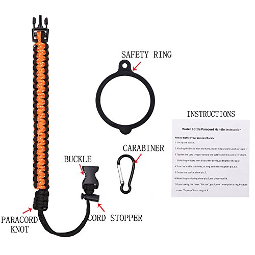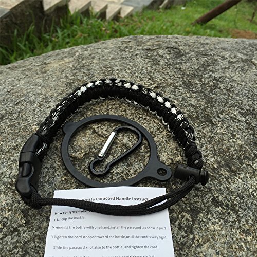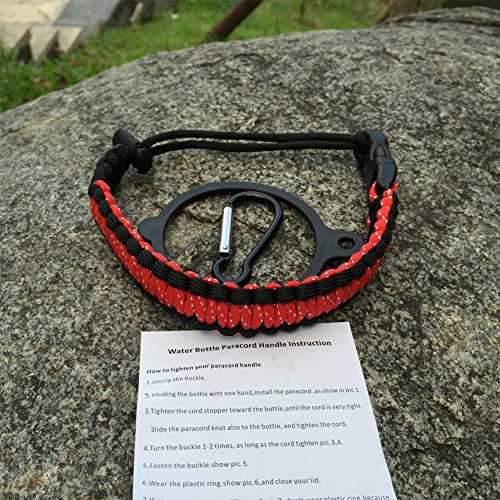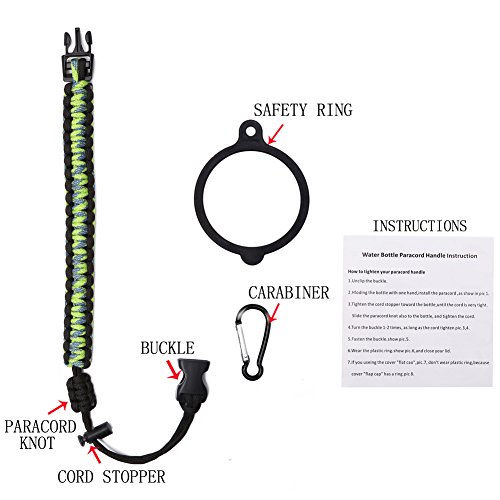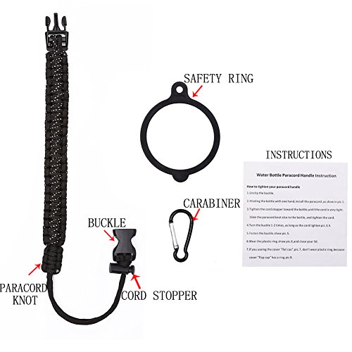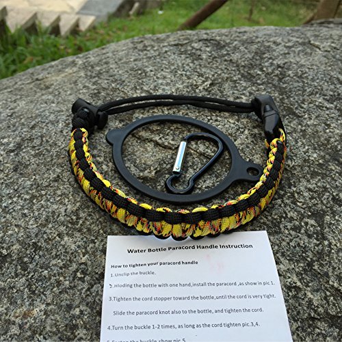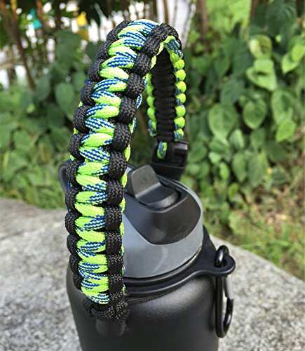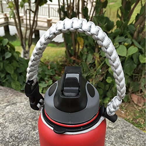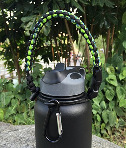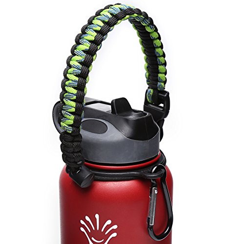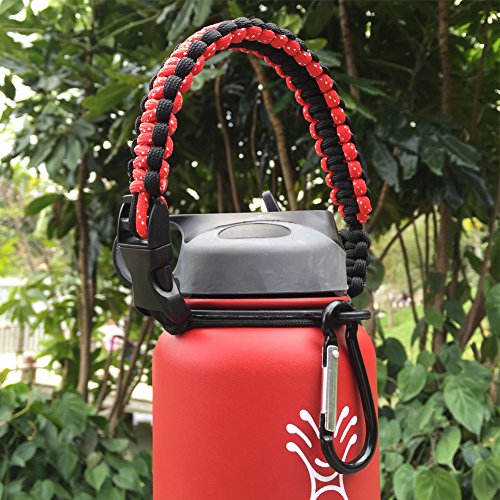 Handle/Carrier for Hydro Flask Wide Mouth Water Bottle with Security Ring,Paracord Survival Strap Handles Include Carabiner and Instructions (Color)