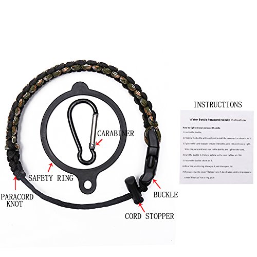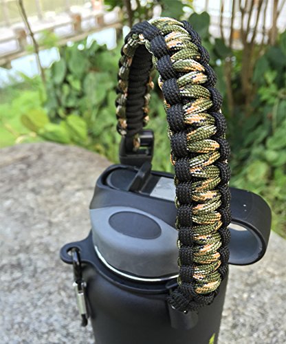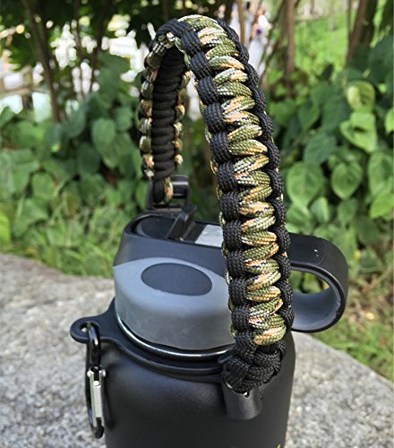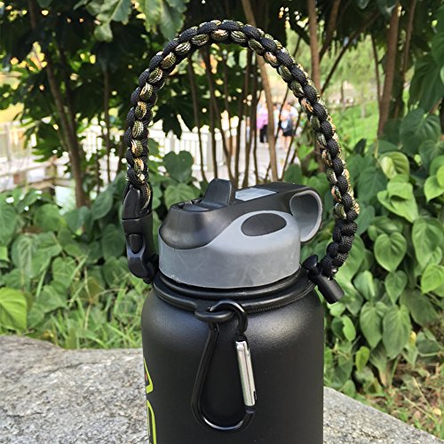 Handle for Hydro Flask - Paracord Survival Strap with Security Ring for Wide Mouth Water Bottles Carrier (Forest Camo/Black)