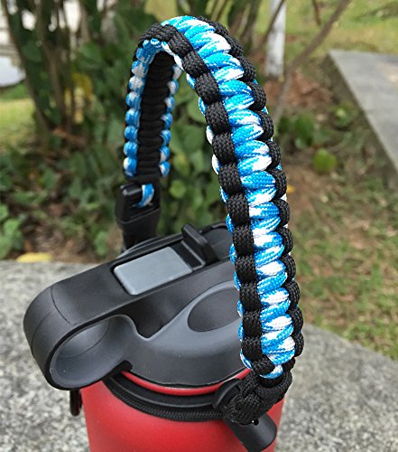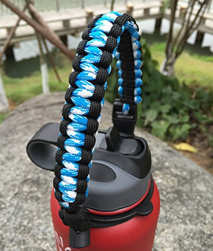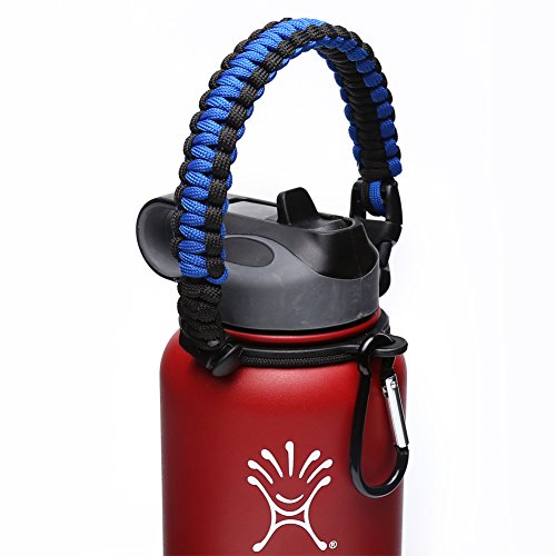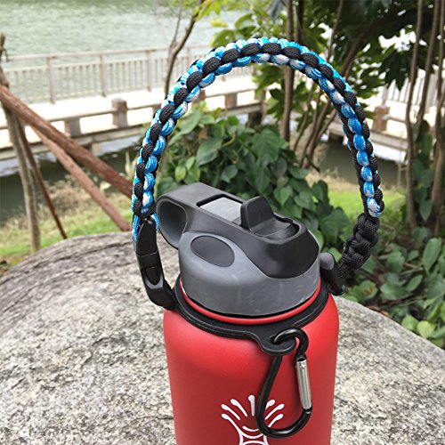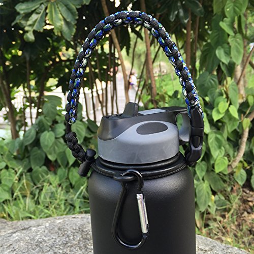 Handle for Hydro Flask - Paracord Survival Strap with Security Ring for Wide Mouth Water Bottles Carrier (Blue/Black)