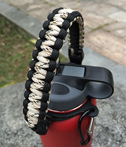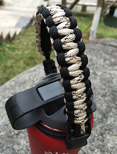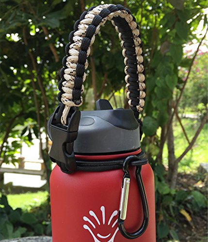 Handle/Carrier for Hydro Flask Wide Mouth Bottles with Security Ring,Paracord Survival Strap Handles with carabiner. (Sand/Black)