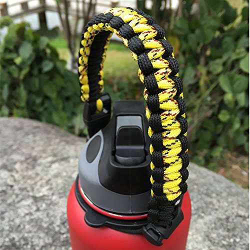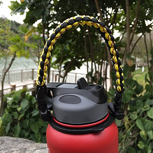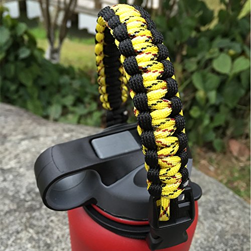 Handle/Carrier for Hydro Flask Wide Mouth Water Bottle with Security Ring,Paracord Survival Strap Handles Include Carabiner and Instructions (Yellow/Black)