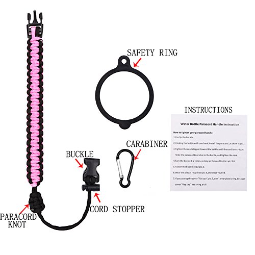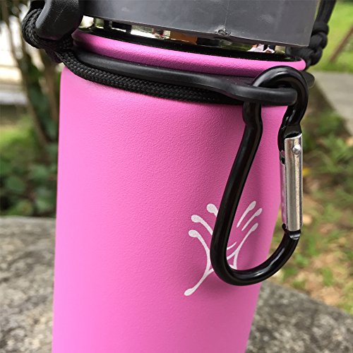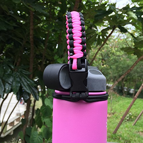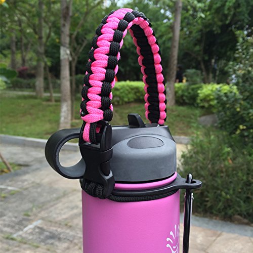 Handle for Hydro Flask - Paracord Survival Strap with Security Ring for Wide Mouth Water Bottles Carrier (Pink/Black)