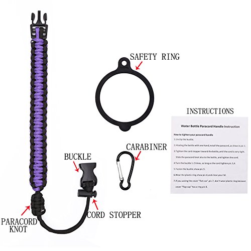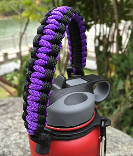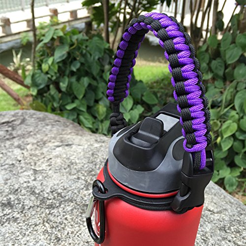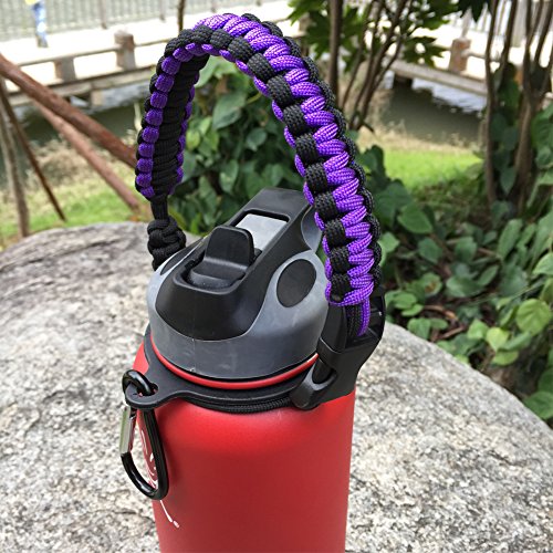 Handle for Hydro Flask - Paracord Survival Strap with Security Ring for Wide Mouth Water Bottles Carrier (Purple/Black)