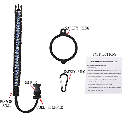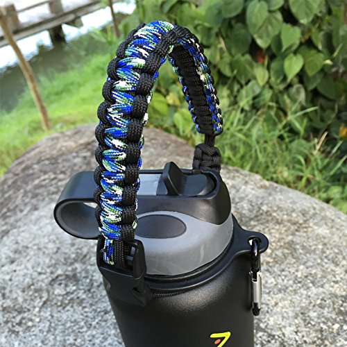 Handle for Hydro Flask - Paracord Survival Strap with Security Ring for Wide Mouth Water Bottles Carrier (Blue Camo/Black)