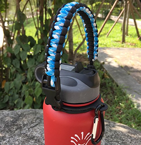 Handle/Carrier for Hydro Flask Wide Mouth Water Bottle with Security Ring,Paracord Survival Strap Handles Include Carabiner and Instructions (Blue White/Black)