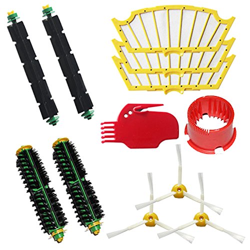 -. Feature : Compatible with iRobot Roomba 500 Series 510 530 535 540 Vacuum Cleaning Robots / The innovative Side brush for iRobot Roomba 500 Robots reaches deep into corners and edges to remove more dirt, dust and debris. Side brushes are easy to remove and replace as part of routine maintenance. / Filters maintain Roomba's cleaning performance while reducing infiltration of dust, pollen and other allergens into the air you breathe. / For best results, these roomba replacement filters and brush should be replaced every 2 - 3 months. / The accessories kit contains 3 x 3-armed Side Brush & 3 filters & 2 x Bristle Brush & 2 x Flexible Beater Brush &2 x Cleaning Tool