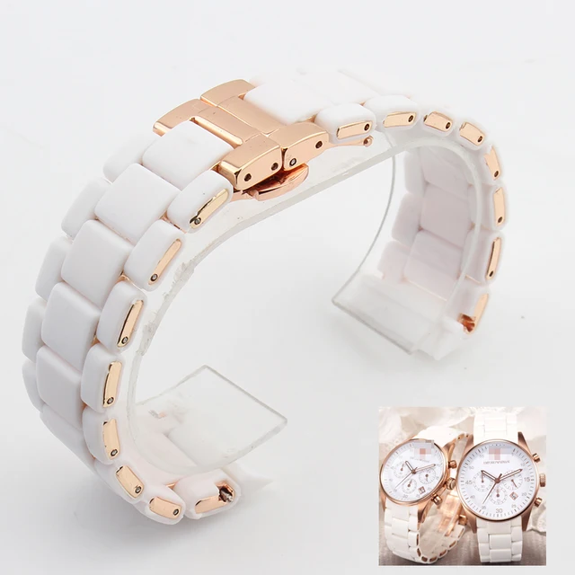 | [해외]고무 손목 시계 로즈 골드 화이트 실리카 젤 armani ar5919 남성 23 미리메터 ar5920 여성 20 미리메터 시계 스트랩 손목 밴드 |