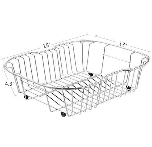 - DIMENSIONS - Drainer Length 15", Width 13" measures across the top; Length 13", Width 11" measures along the base; 4.4" Height. Please measure your sink before purchase.
