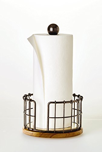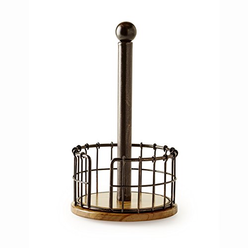 Pfaltzgraff Antique Anvil Cage Wire And Acacia Wood Paper Towel Holder, Black