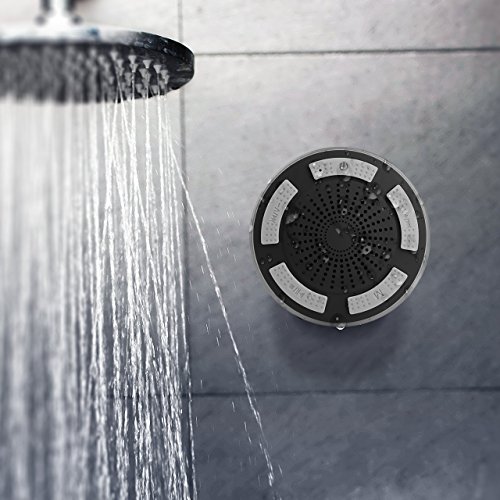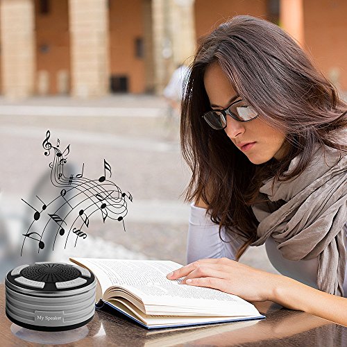 ULTRA PORTABLE: "My Speaker" features a stable suction cup that lets you stick it to shower walls, car windows, desktops, bathroom tile, kitchen counters, and anywhere you want get. More surprise is it have an 4 colors BREATHING LED lights which will creat a dynamic and romantic music ambience, So you can anytime enjoy great music and handsfree calling especially when you are taking a shower.