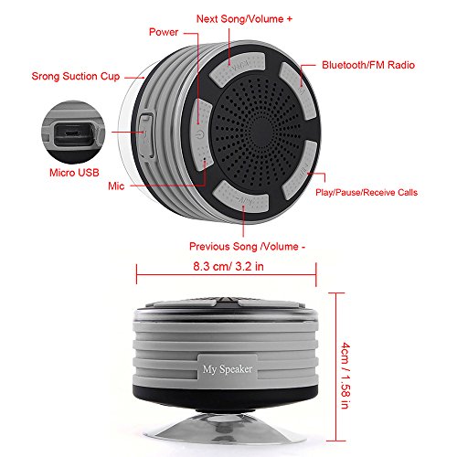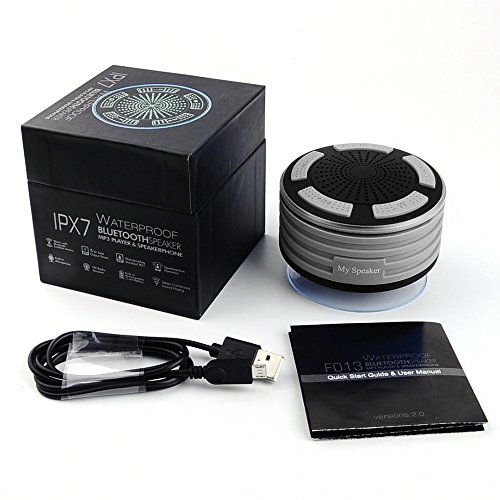 HIGHEST WATERPROOF RATING: With IPX7 certification rating means that excellent choice to use around pool, beach, bath, boat, car & golf cart and all water environments. it not only submersed in 1M of water for 30 minutes or floating on the pool over 20 hours but also SHOCKPROOF , DUSTPROOF & SCRATCHPROOF. "My Speaker" can as a shower radio, work radio, hot tub speaker, portable speaker and many many more !