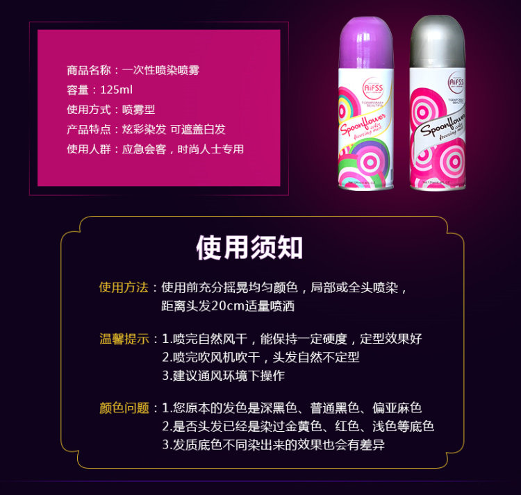 植物天然一次性染发喷雾发胶挑染发剂染发膏蓝色奶奶灰银男女