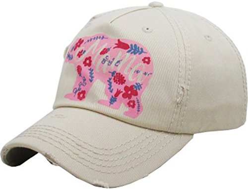 -. Feature : Vintage looking, distressed ball cap, washed color / Adjustable velcro back with "MAMA BEAR" embroidered on strap / Mama bear floral screenP.R.Int on front
