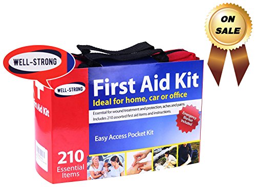 210 PCS WELL-STRONG First Aid Supplies Kit Is Essential! Great investment for your family safety! The kit contains 210 pcs first aid supplies which cover the majority usage in daily accidents.