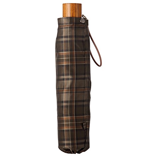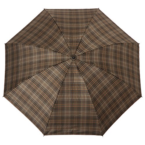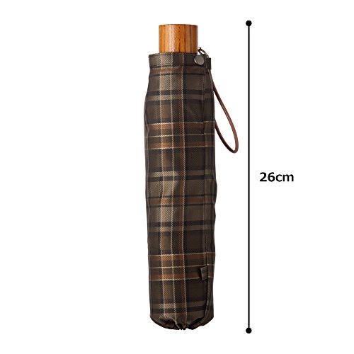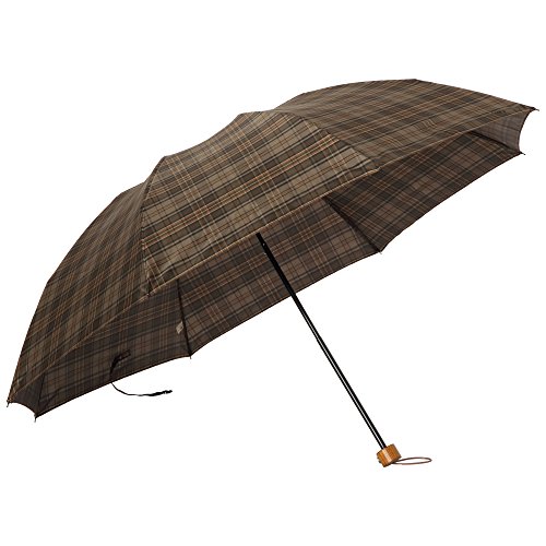 -. Title : アスティ 紳士用 先染 ミニ式折傘 タータンチェック柄 60cm×8R グリーン/ブラウン 15501C60