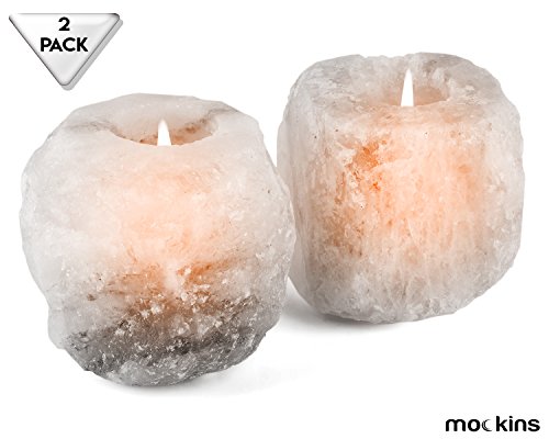 mockins Natural Himalayan White Salt 2.5-lbs Tea Light Holder 2 Pack - Holiday Gift