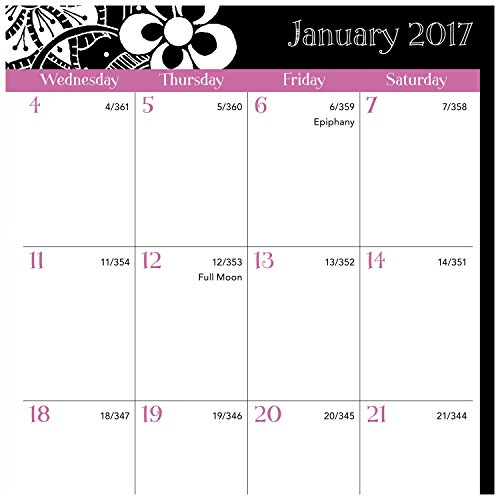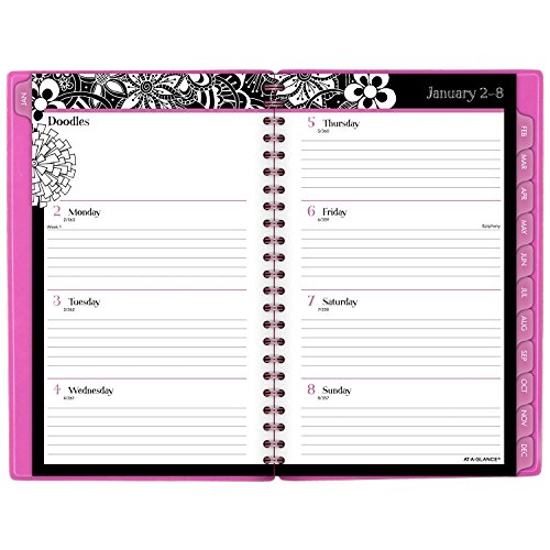 -. Binding : Office Product -. Brand : At-A-Glance -. EAN : 0038576361270 -. Feature : FloraDoodle design features white flowers on a black backdrop with a scribble look where flowers, petals and squiggles lay overtop one another / Planner covers 12 months from January - December with Julian dates for a full year of weekly and monthly planning, with special reference pages included. / One week per two page spread with an equal amount of ruled planning space for each day Monday - Sunday to record daily plans and tasks. A blank space for doodles starts off each week for room to spend free time drawing. -. Label : ACCO Brands -. Manufacturer : ACCO Brands -. Model : 189-200-17 -. MPN : 189-200-17 -. NumberOfItems : 1 -. PackageQuantity : 1 -. PartNumber : 189-200-17 -. ProductGroup : Office Product -. ProductTypeName : OFFICE_PRODUCTS -. Publisher : ACCO Brands -. Studio : ACCO Brands -. Title : AT-A-GLANCE Weekly / Monthly Planner / Appointment Book 2017, 4-3/4 x 8", Black/White (189-200) -. UPC : 038576361270