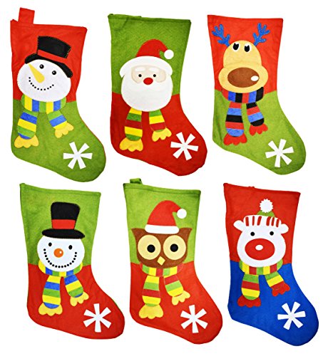 Set of 6 - 18" Santa, Snowman, Reindeer, Polar Bear, & Owl Christmas Holiday Stockings with Hanging Tag