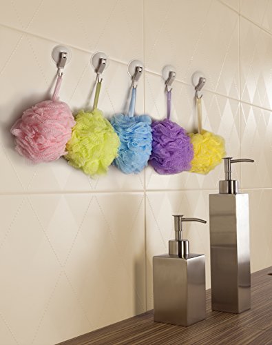 Including 8 colorful sponges.;Large size (50 g), so you can easily hold and scrub.;Quality material that looks beautiful, holds up and creates great lather.;Attractive, longer, durable handle to place hand through for scrubbing and hang to dry in bath or shower.;Great for exfoliating! Soft to the touch, but rough enough to give you smooth, silky skin.