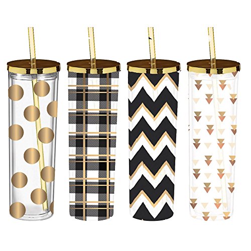 -. Feature : Take your drink on the go with these fashionable cups with freezable ice cubes / Made of BPA free acrylic / Top-rack dishwasher safe; reusable with cold-liquids only / Includes 4 reusable and freezable ice cubes / Measures 2.95 x 2.95 x 10.47 inches