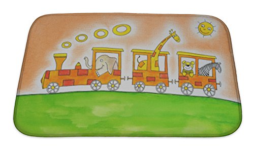 Gear New No Slip Microfiber Memory Foam Animals on Trip Childs Drawing Watercolor Painting on Paper Bath Rug Mat, 24" X 17"
