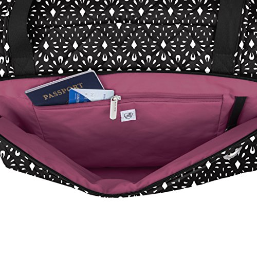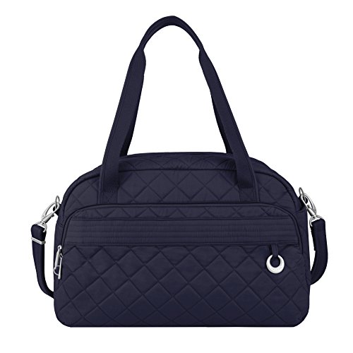 Studio : Travelon Publisher : Travelon Binding : Apparel Product Description This Weekender bag is exactly what you need for your everyday office commute or overnight travels. It is roomy and functional with enough room for your business accessories. It is perfect for the gym, too. With a locking main compartment, zip wall pocket, and two elasticized side pockets you will stay organized and protected. It has slash-resistant carry handles along with adjustable removable shoulder straps. The add-a-bag strap allows the backpack to slide over handle of wheeled luggage. 0