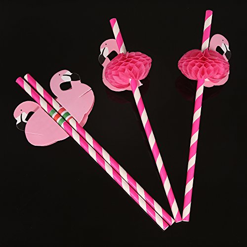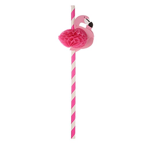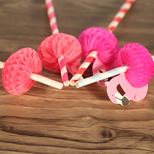 Anself 50pcs/set Cute Food Grade Paper Straws for Birthday Wedding Baby Shower Celebration and Party Multifunctional Straws with Flamingo Decorated