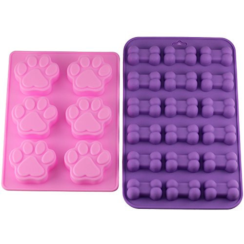 Mujiang Puppy Dog Paw And Bone Silicone Chocolate Candy Molds Pet Treat Set of 2